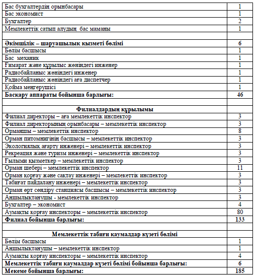 Қазақстан Республикасы Экология, геология және табиғи ресурстар министрлігі Орман шаруашылығы және жануарлар дүниесі комитетінің «Жоңғар - Алатауы мемлекеттік ұлттық табиғи паркі» республикалық мемлекеттік мекемесінің құрылымы