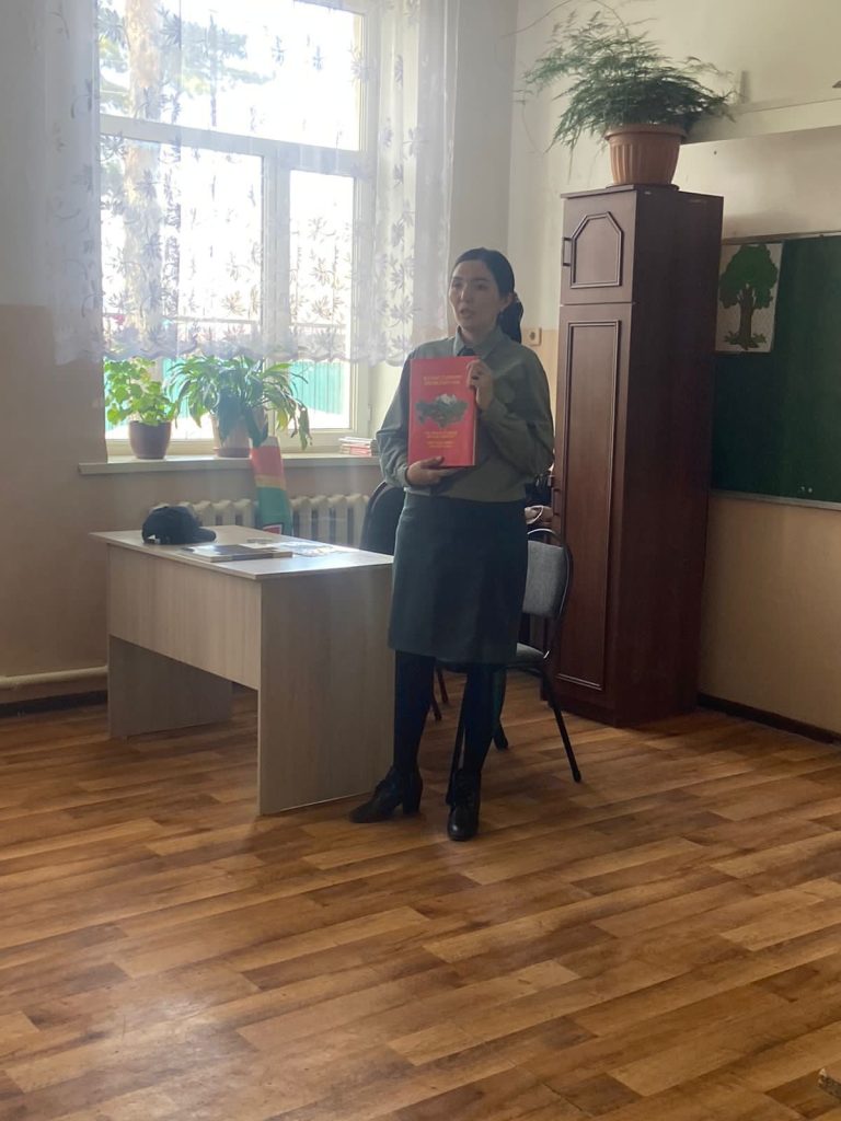 Дәріс барысында табиғатты қорғау акциясы аясында өткізілетін іс-шаралар және ұлттық парк туралы ақпараттар беріліп, мектеп алаңына ағаш көшеттері отырғызылды.
