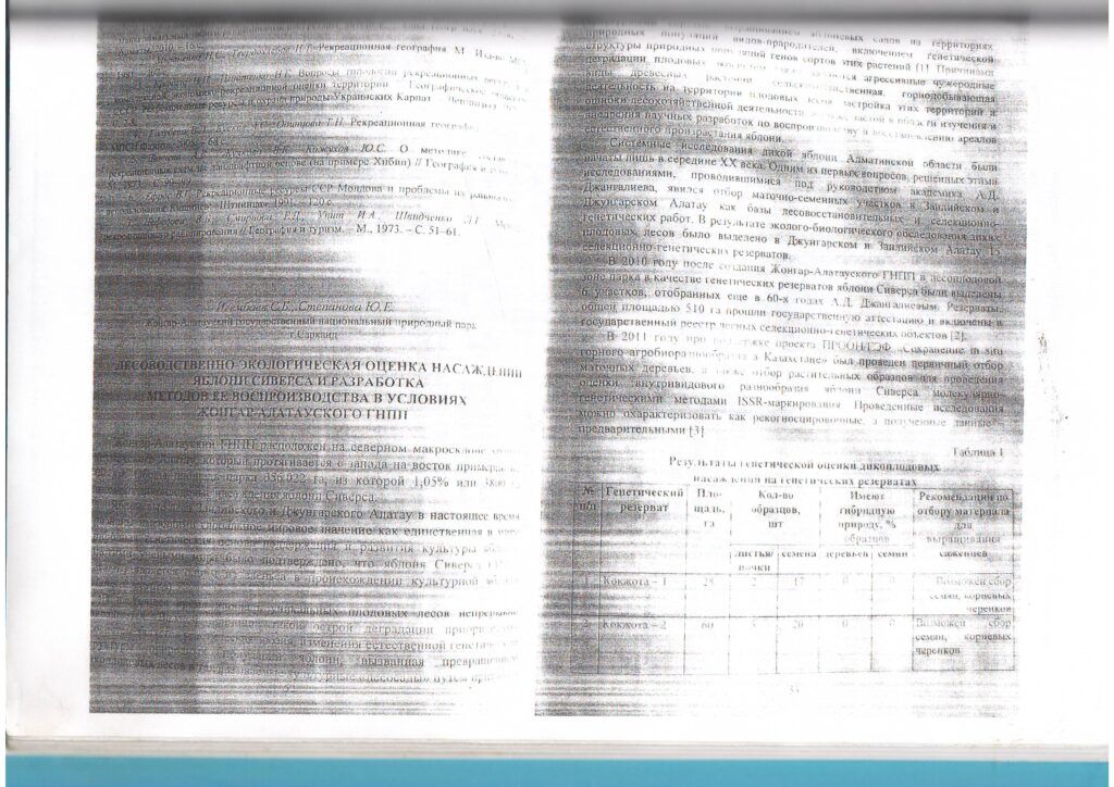 Сиверс алма ағашының екпелерін орман - экологиялық бағалау және Жоңғар - Алатауы МҰТП жағдайында оны молықтыру әдістерін әзірлеу (2013 ж.)