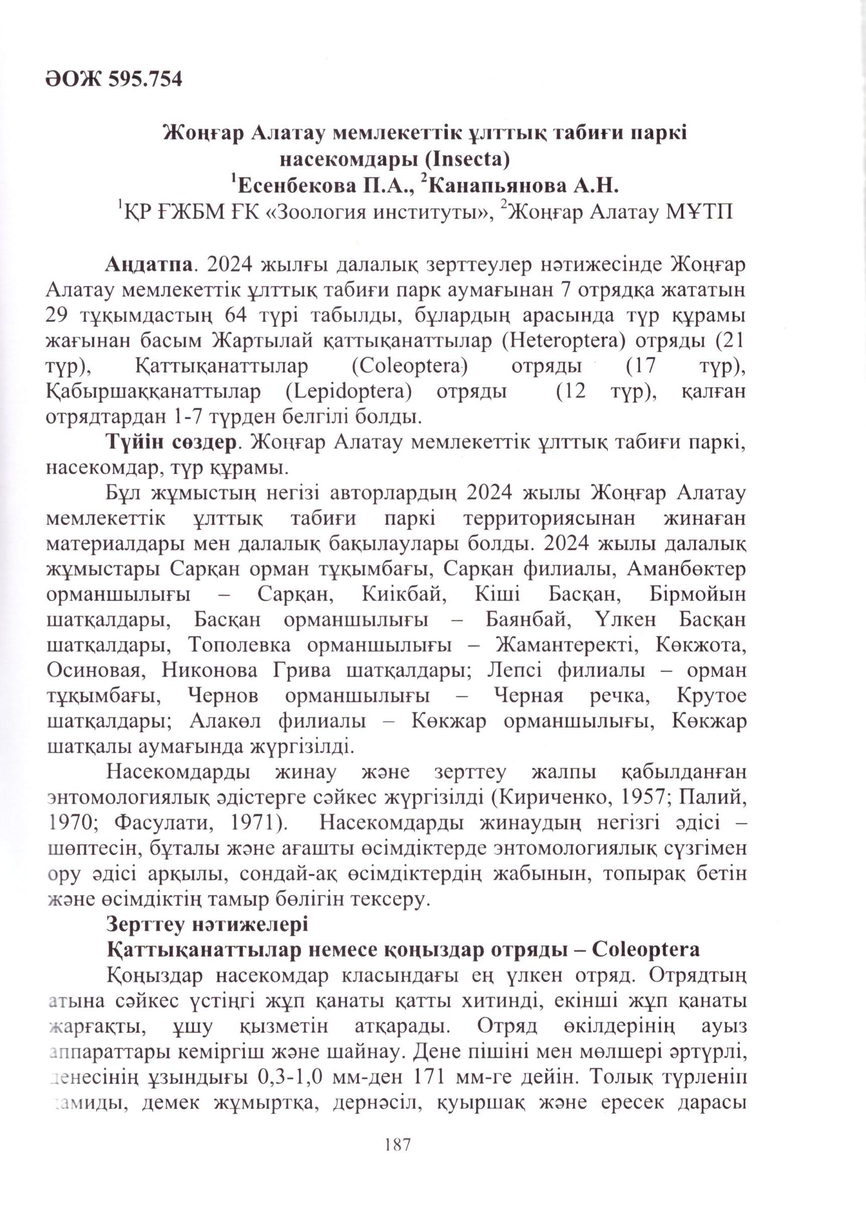 Жоңғар Алатауы мемлекеттік ұлттық табиғи паркі насекомдары (2024 ж.)