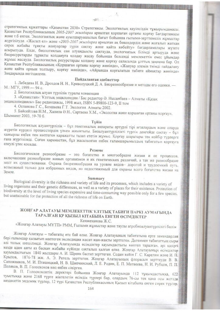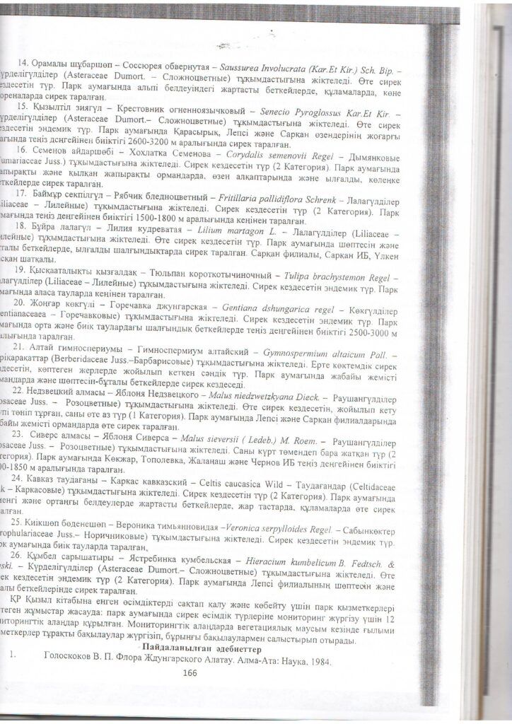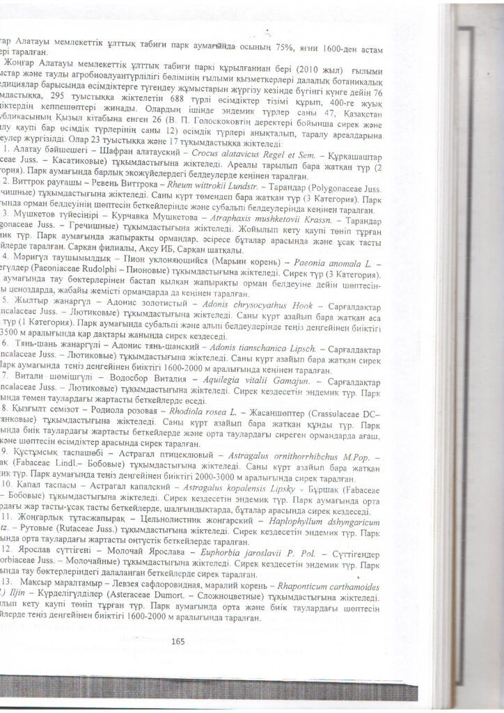 Жоңғар Алатауы мемлекеттік ұлттық табиғи паркінің аумағында таралған ҚР Қызыл кітабына енгізілген өсімдіктер (2015 ж.)