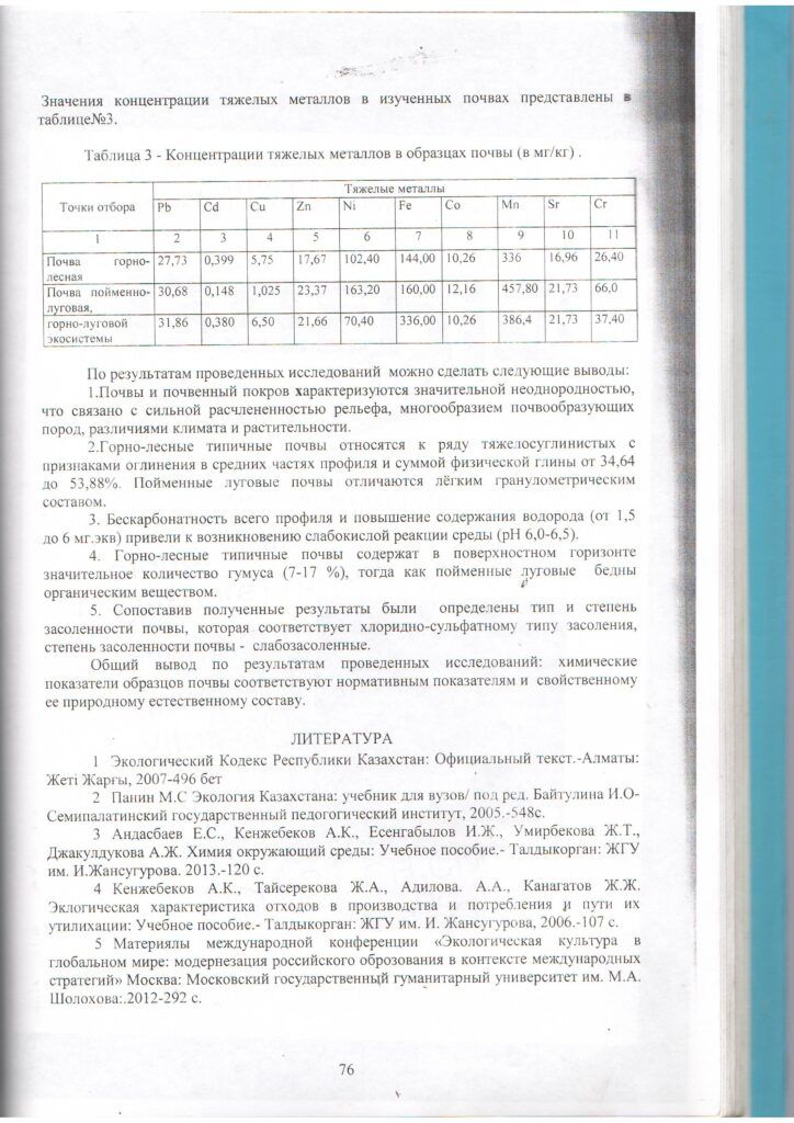 «Жоңғар-Алатауы» МҰТП аймақтылығы бойынша топырақтың экологиялық жай-күйін бағалау (2013 ж.)