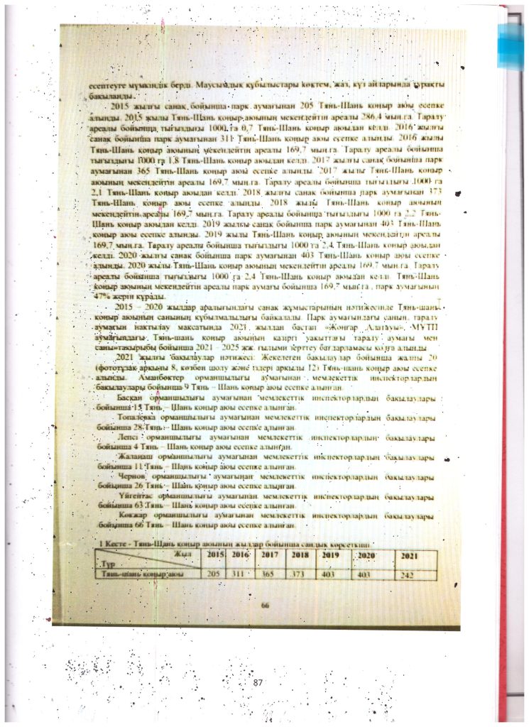 Жоңғар - Алатауы МҰТП аумағындағы Тянь - Шань қоныр аюның қазіргі уақыттағы таралу аумағы, саны және маусымдық құбылыстарының ерекшеліктері (2022 ж.)