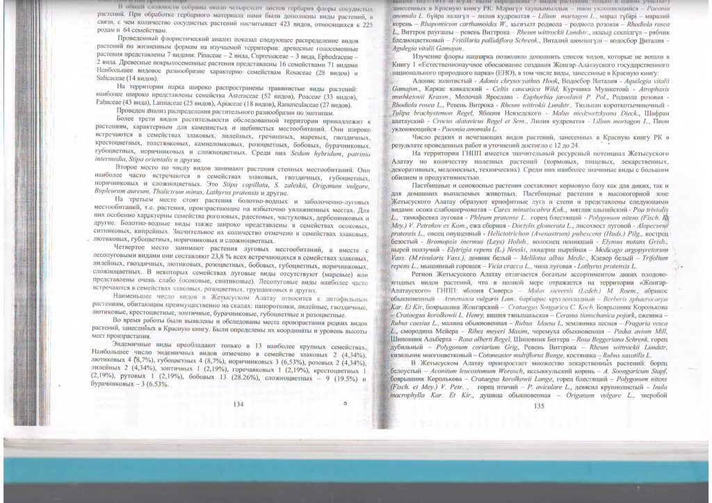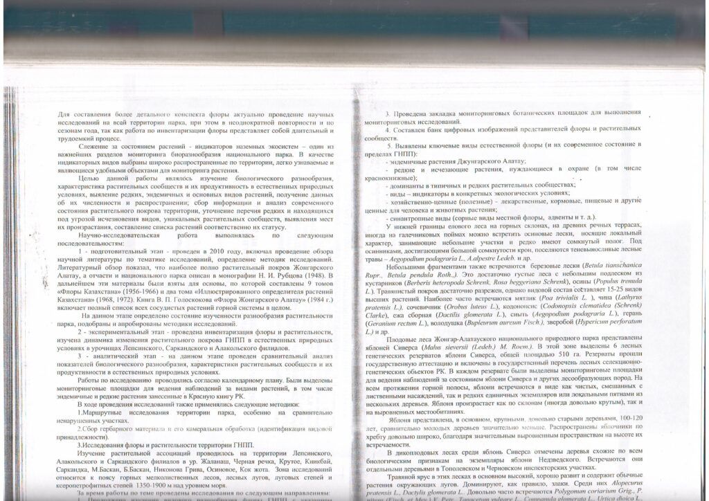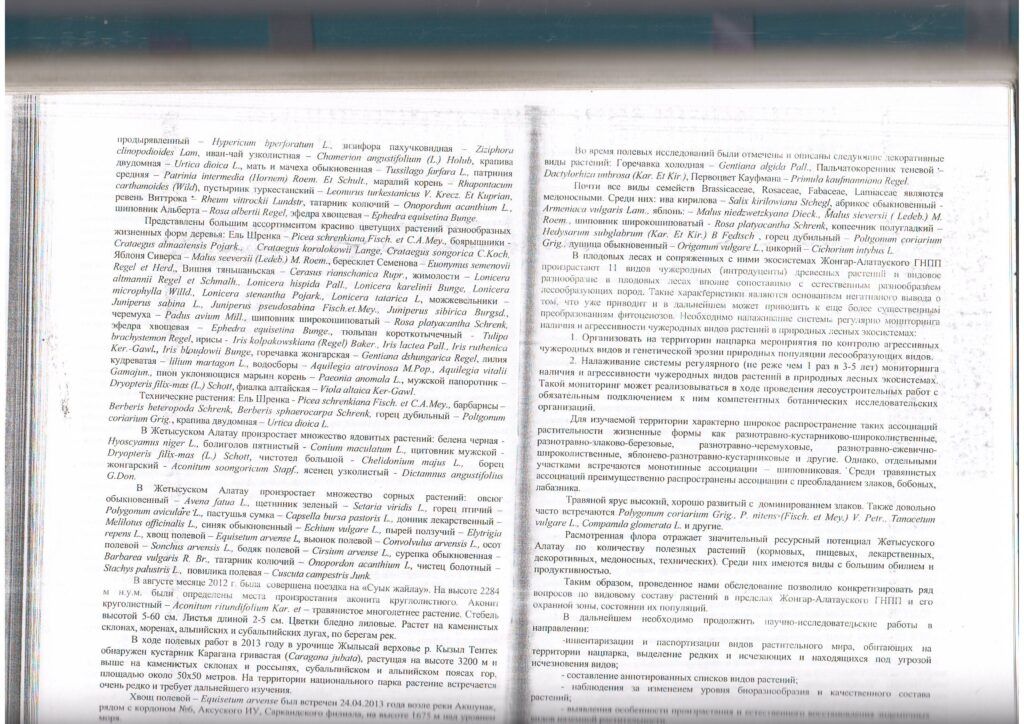 Жоңғар - Алатауы МҰТП негізгі (фондық) өсімдік түрлерінің мониторингі (2014 ж.)