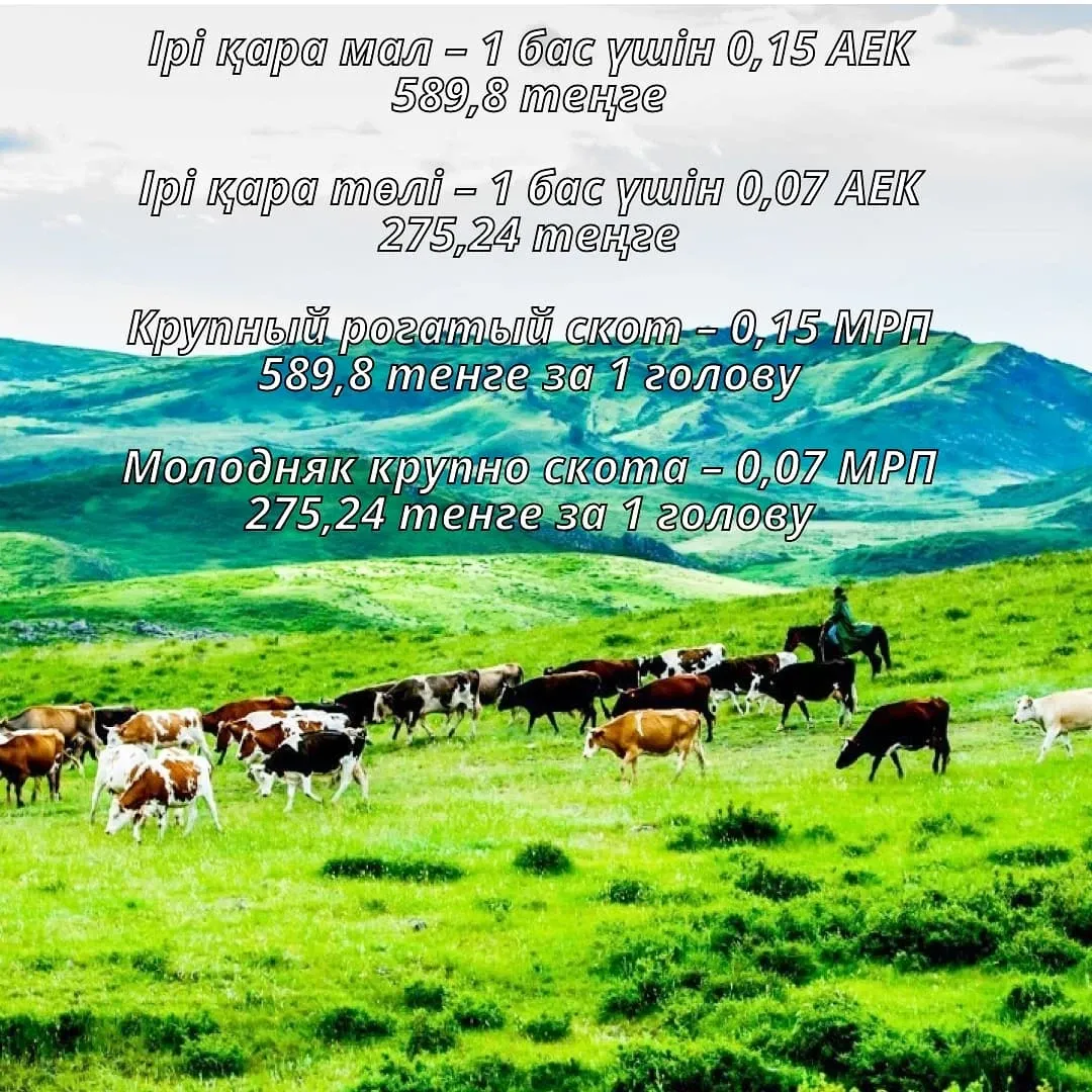Ірі қара төлі –0,07 АЕК - 275,24 теңге
