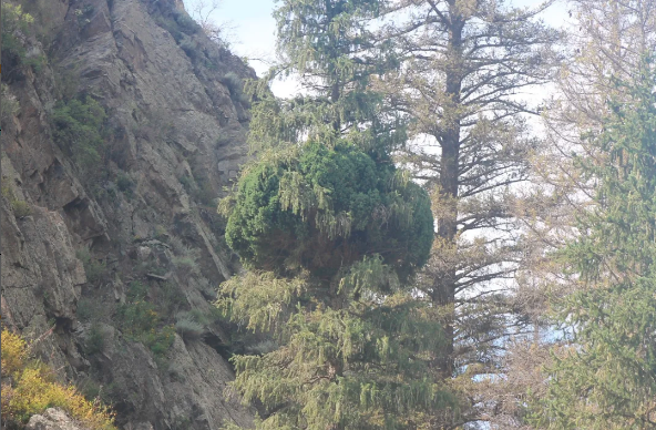 Осындай әсерге ұшыраған Шренк шыршасынан «Мыстан сыпыртқысы» далалық іс сапар барысында Сарқан өзені жағалауынан теңіз деңгейінен 1354 м биіктікте кездестірілді.
