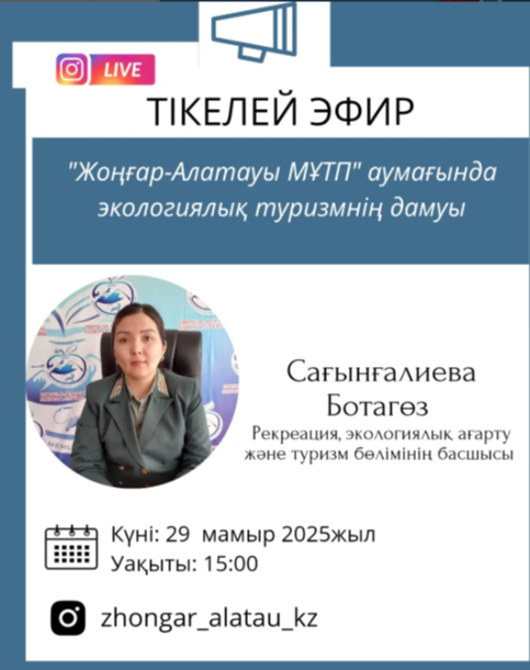 Тікелей эфир! 29.05.2025Тақырыбы: "Жоңғар- Алатауы МҰТП" аумағында экологиялық туризмнің дамуы.