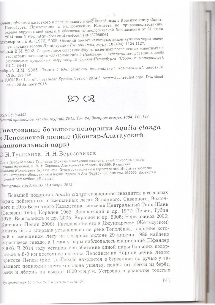 Гнездование большого подорлика Aquila clanga в Лепсинской долине (Жонгар-Алатауский национальный парк) (2015 г.)