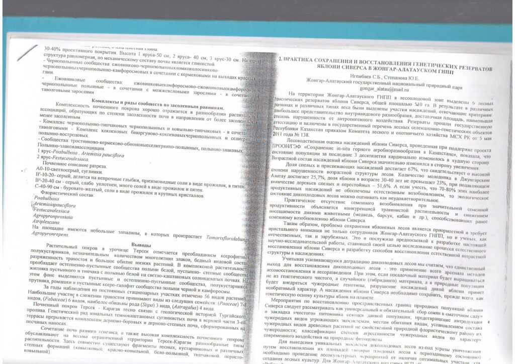 Дикоплодовые леса Жонгар - Алатауского ГНПП, как важный компонент биоразнообразия (2015 г.)