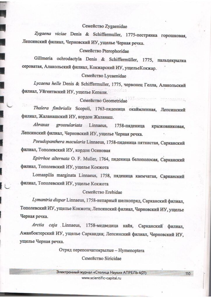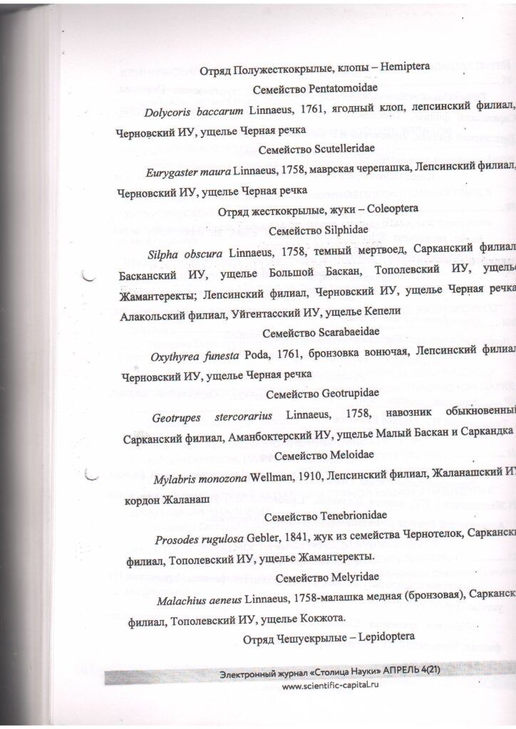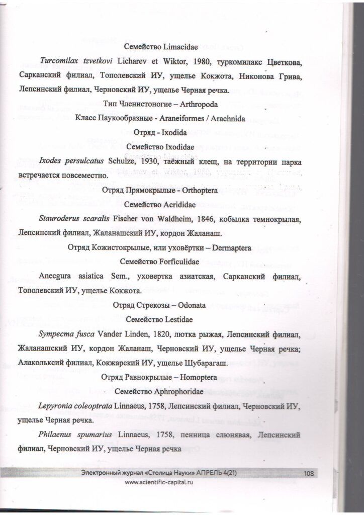 Дополнения к списку беспозвоночных, обитающих в Жонгар-Алатауском государственном национальном природном парке (2020 г.)
