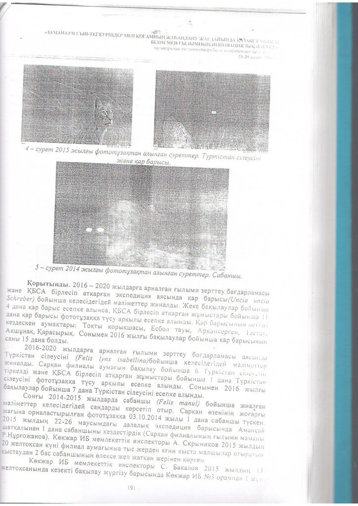 Экологическое состояние семейства кошачьих на территории Жонгар - Алатауского ГНПП (2016 г.)