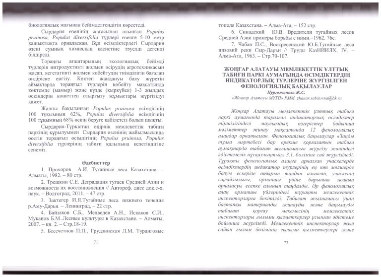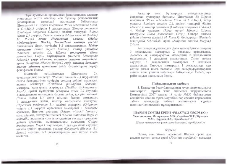 Фенологические наблюдения за индикаторными видами растений на территории Жонгар - Алатауского государственного национального природного парка (2023 г.)