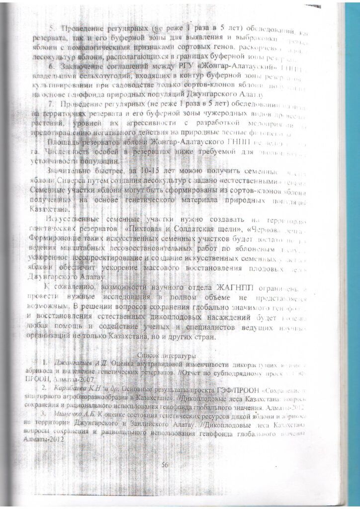 Лесоводственно-экологическая оценка насаждений яблони Сиверса и разработка методов ее воспроизводства в условиях Жонгар-Алатауского ГНПП (2013 г.)