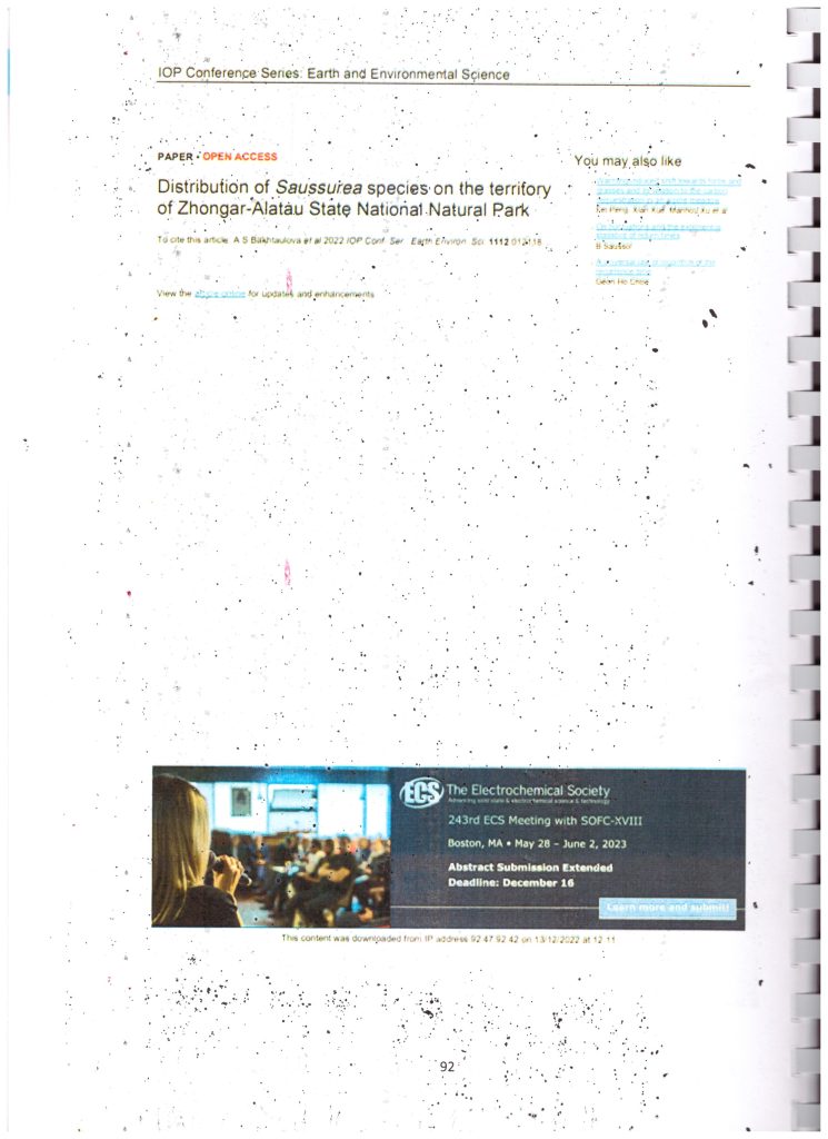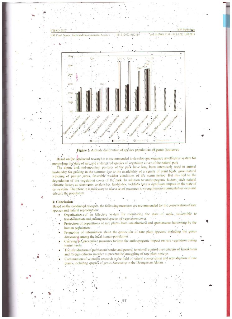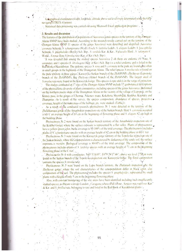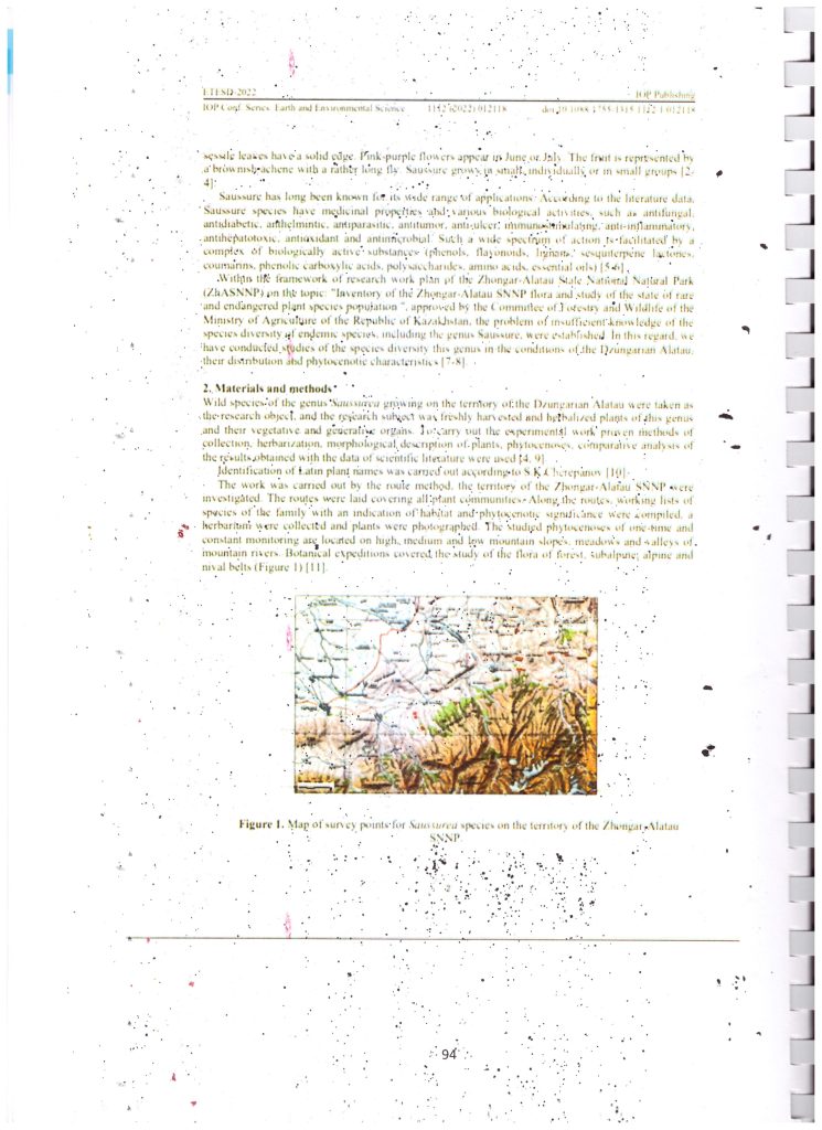 Распространение вида Saussurea на территории Жонгар - Алатауского государственного национального природного парка (2022 г.)