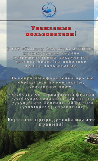 производится выдача разрешительных документов (лесной билет) на побочное лесное пользование.