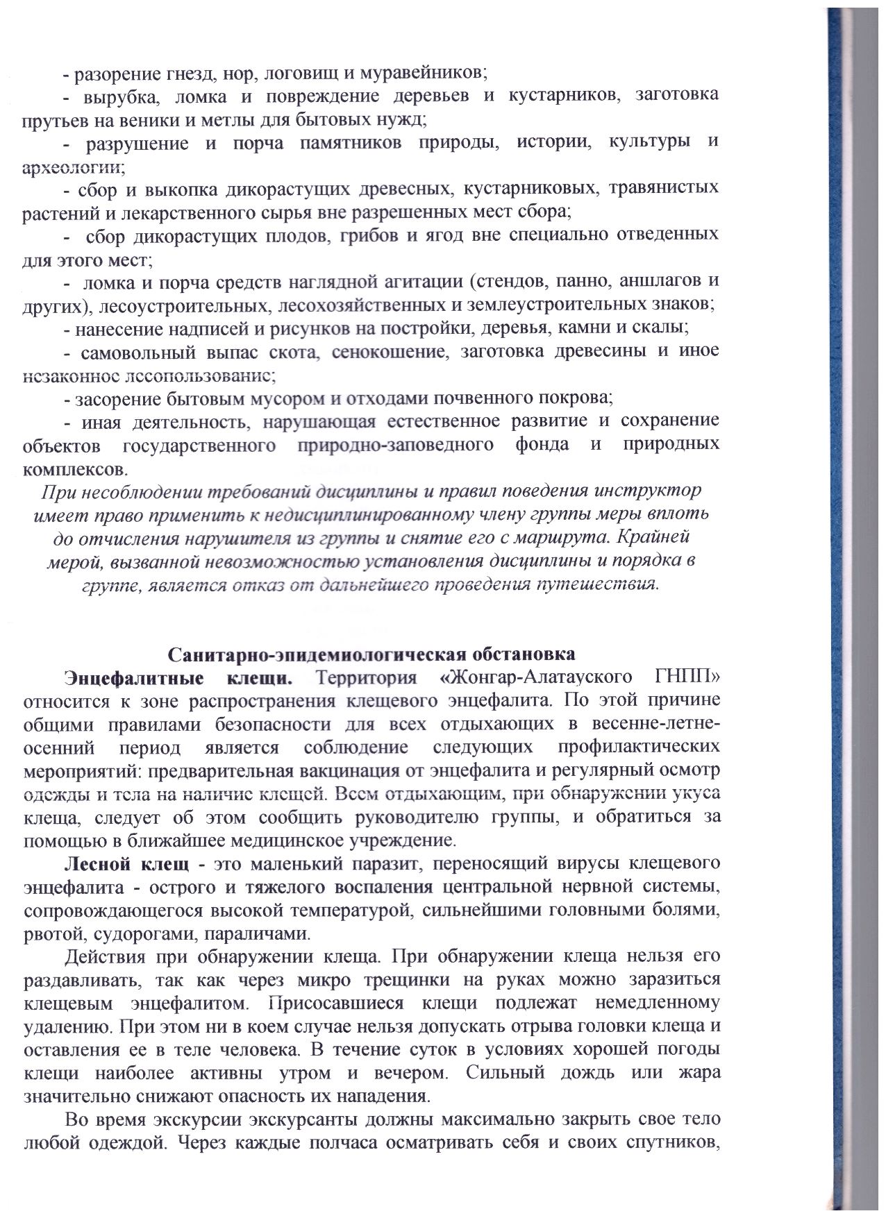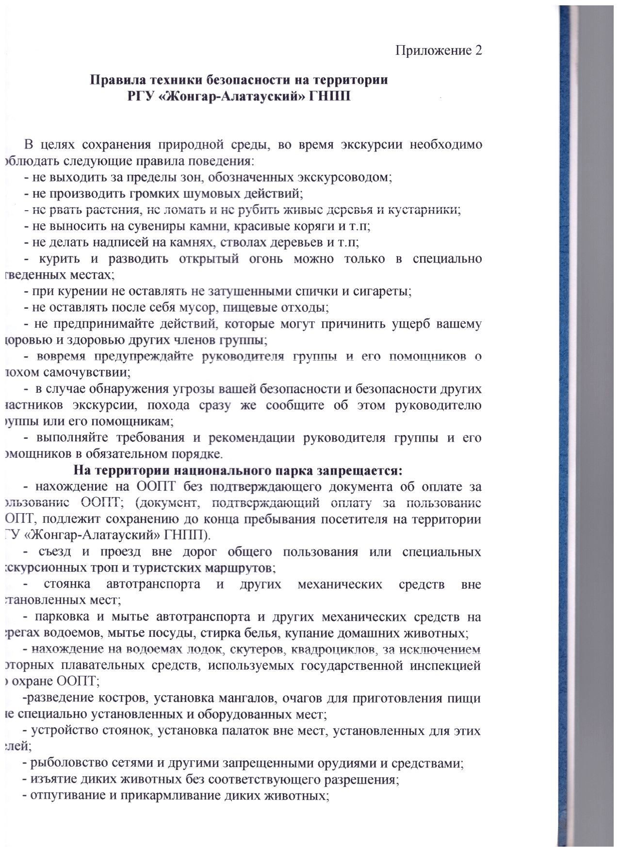 Рекомендации по посещению национального парка