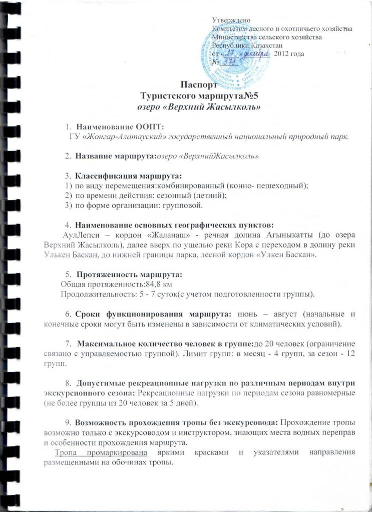 Туристский маршрут № 5 «Оз.Верхний Жасылколь»