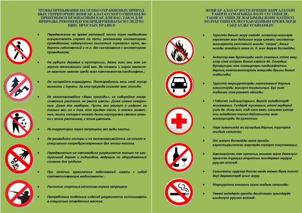 На всех маршрутах при въезде установлены аншлаги с картой туристических маршрутов и правилами посещения ООПТ.