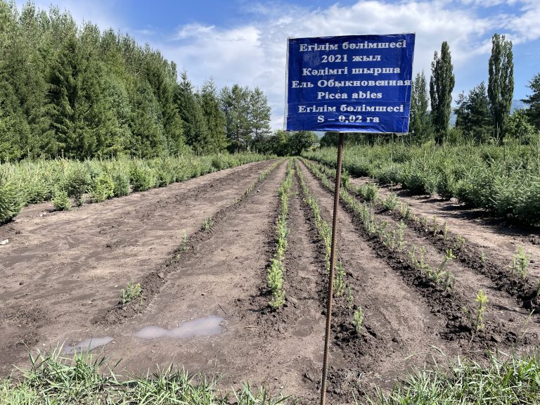 Целевое назначения: выращивание стандартного посадочного материала для озеленения населенных пунктов и воспроизводства леса. Площадь питомника - 25 га. Экскурсовод проводит беседу о границах лесного питомник, кратко характеризует климат, рельеф, рассказывает о задачах лесного питомника (выращивание древесно-кустарниковых пород в целях озеленения населенных пунктов и воспроизводства леса). По мере продвижения по тропе экскурсанты знакомятся с особенностями лесного питомника.