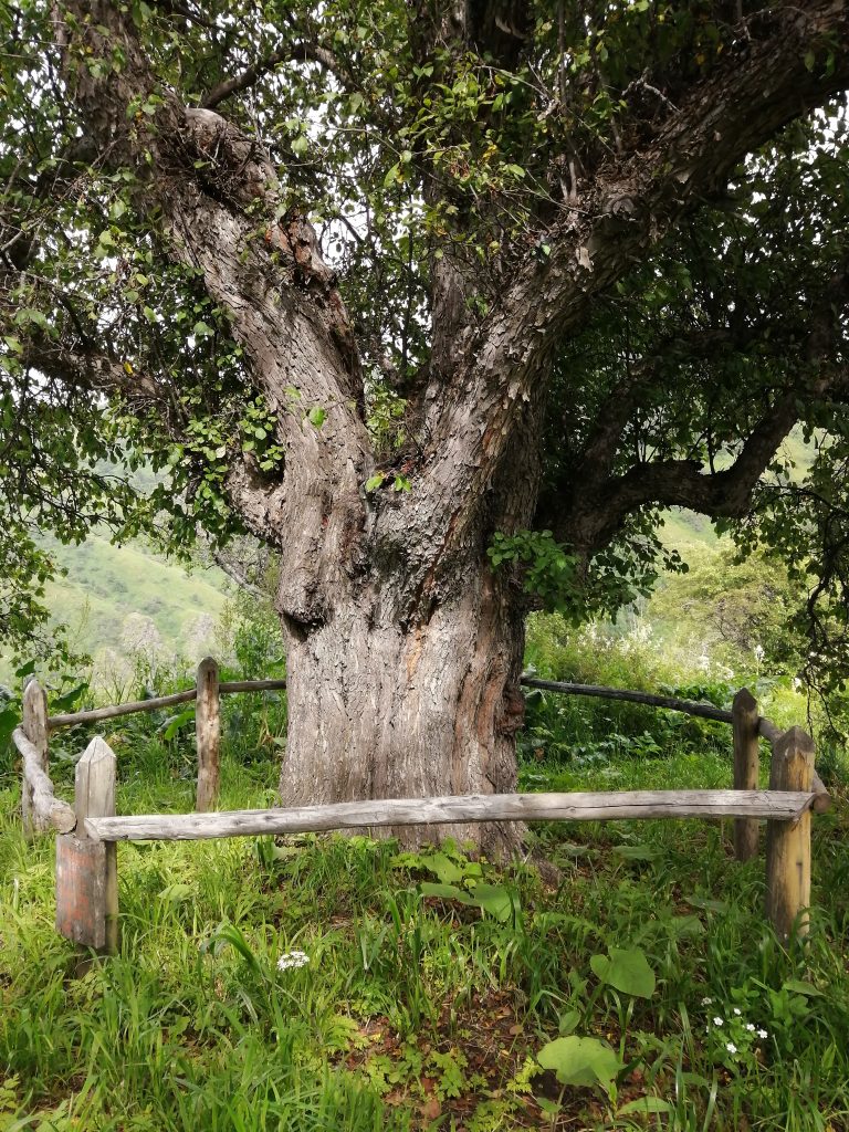 Преодолевая подъем, протяженностью около 2 км, туристы достигают смотровой площадки №1. Экологическая тропа пролегает вдоль насаждений реликтовых яблонь Сиверса», черной сливы, осины. Вокруг источают ароматы - разнотравье этого природного пояса. Это и душица, и шалфей, и ромашка и т.д. Воздух звенит от стрекота различных насекомых и цикад, перекликаясь с голосами птиц. Осмотрев местность, полюбовавшись красотой окружающего ландшафта со смотровой площадки, туристы начинают подъем на смотровую площадку № 2. На протяжении 3 км экскурсантов окружают заросли сочной малины. На смотровой площадке №2 туристы делают небольшой отдых, любуются окружающей природой, панорамой Лепсинска, ущельем р.Лепсы, «Жылысая». Пройдя полпути, группа туристов добирается до бивачной поляны, которая находится ниже 2 км. Здесь туристы могут отдохнуть, пообедать, попить чай с добавлением травяного сбора, подвести итоги пройденного пути.
