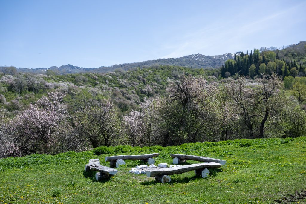 Осы маршруттың көлік бөлігі Сарқан қ. - Тополевка а. автожолымен өтеді. Жол бойында Теректі өзеніндегі тас плиталарға ҚКА - 1 Бақылау алаңына кіру. Трасса Тополевка ауылында аяқталады, одан әрі қара - ауылдық жолмен «Осиновая» кордонына дейін көтеріледі. «Осиновая» орманшы үйінен маршруттың генетикалық резерваттарға дейінгі жаяу жүргіншілер бөлігі басталады. Мұнда экскурсанттар шырша мен Сарбаз шатқалдарындағы Сиверс алма ағашының жабайы жеміс екпелерінің табиғи, салыстырмалы түрде таза өсу орындарын зерттейді, гид - экскурсовод Сиверс алма ағашының даму тарихымен таныстырады. Тексеруден кейін туристер тобы кордонға оралады, онда олар демалып, өз әсерлері мен бақылауларымен бөліседі.