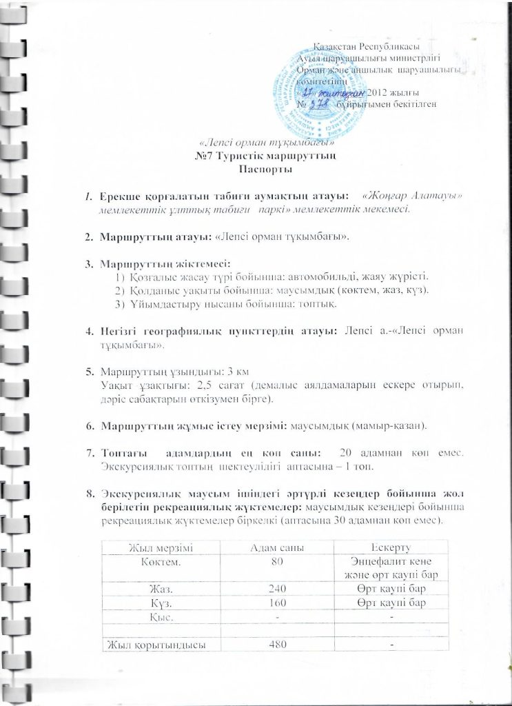 №7 Туристік маршрут «Лепсі орман тұқымбағы»