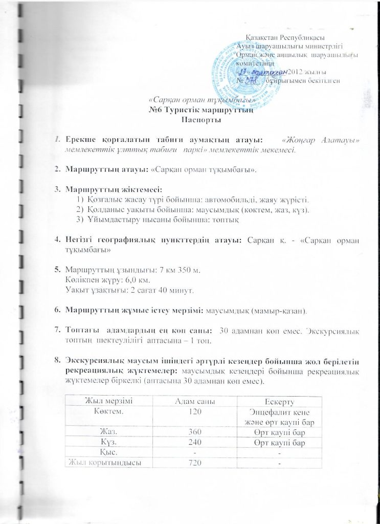 №6 Туристік маршрут «Сарқан орман туқымбағы»