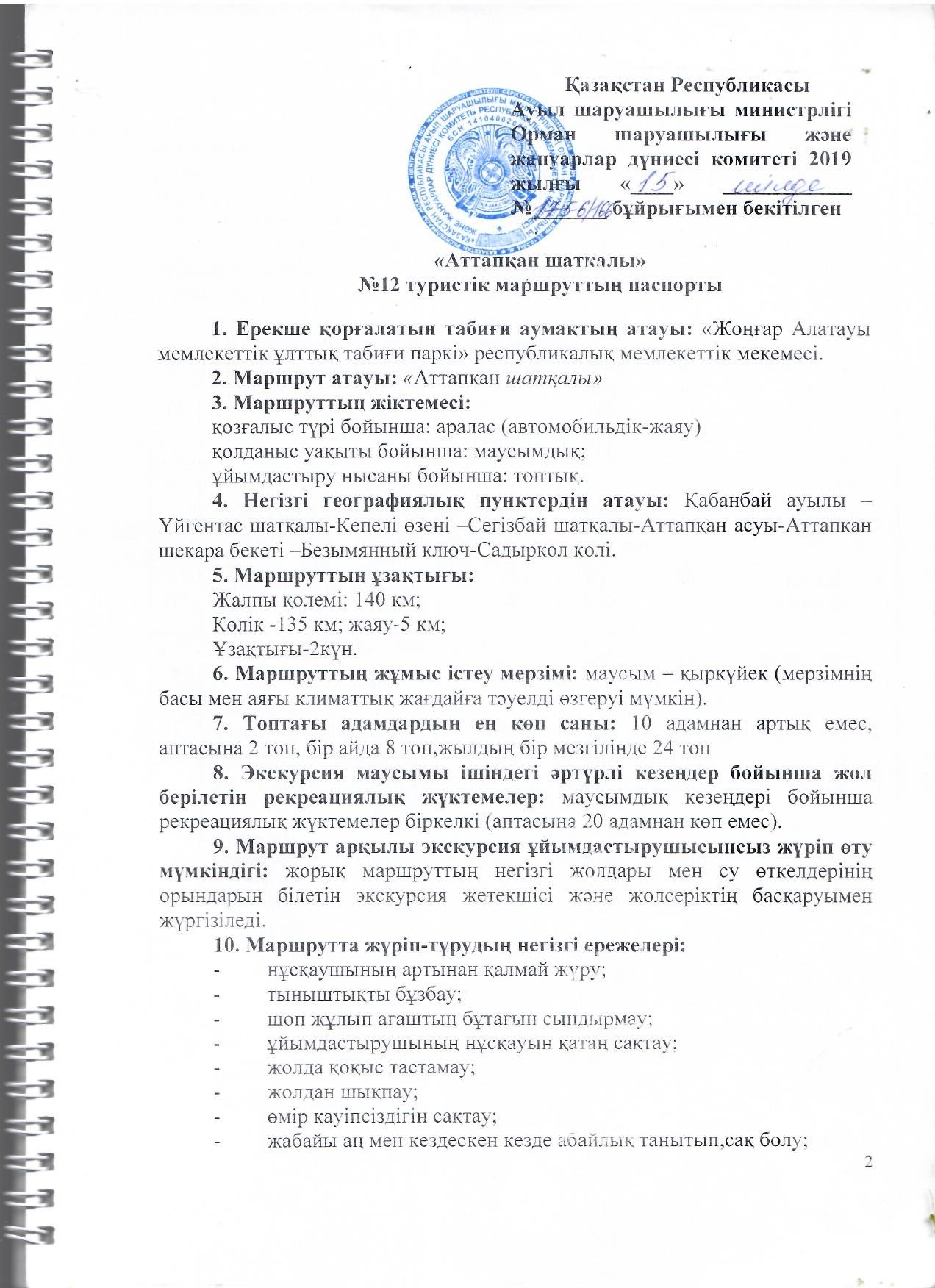 №12 Туристік маршрут "Аттапкан" шатқалы