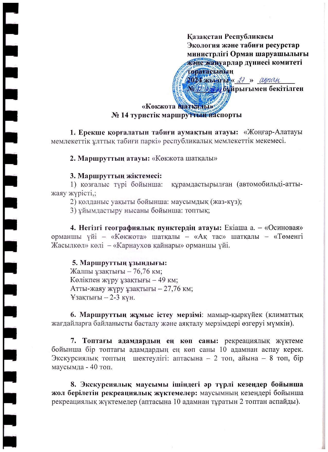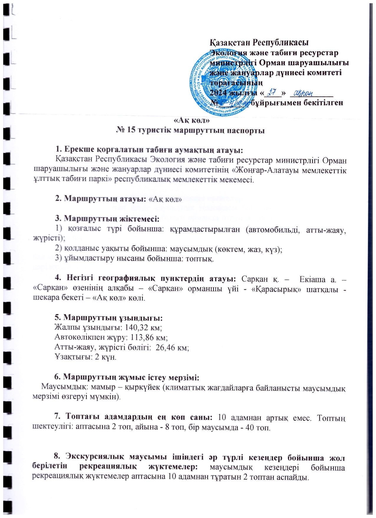 №5 Туристік маршрут «Жоғарғы Жасылкөл»