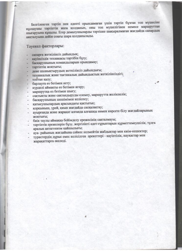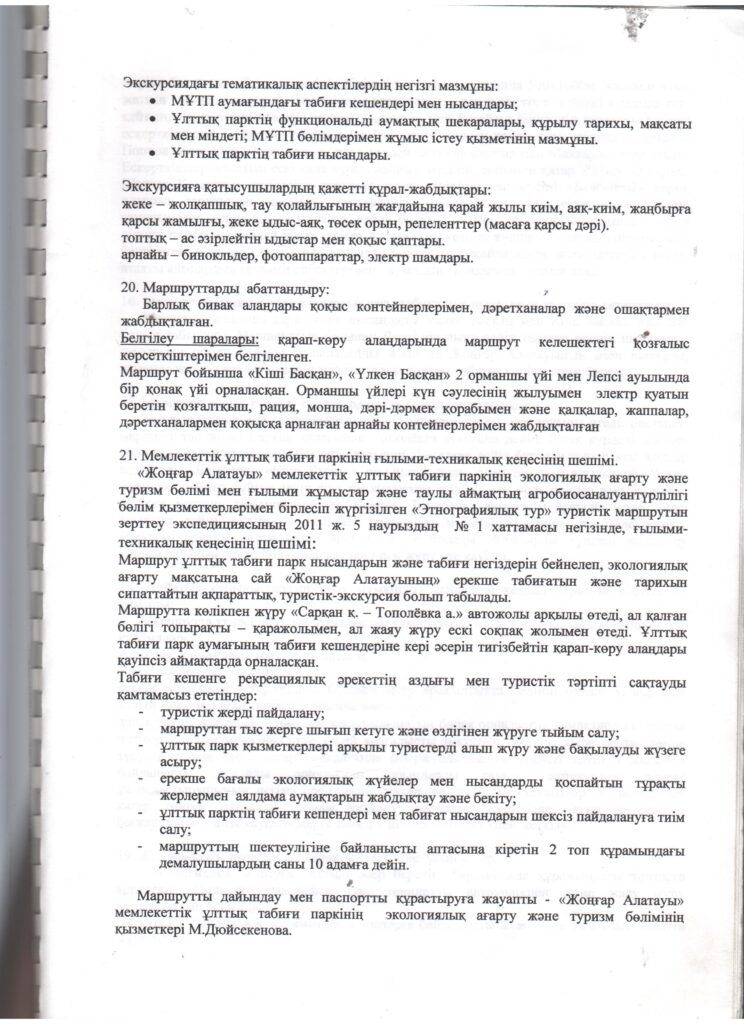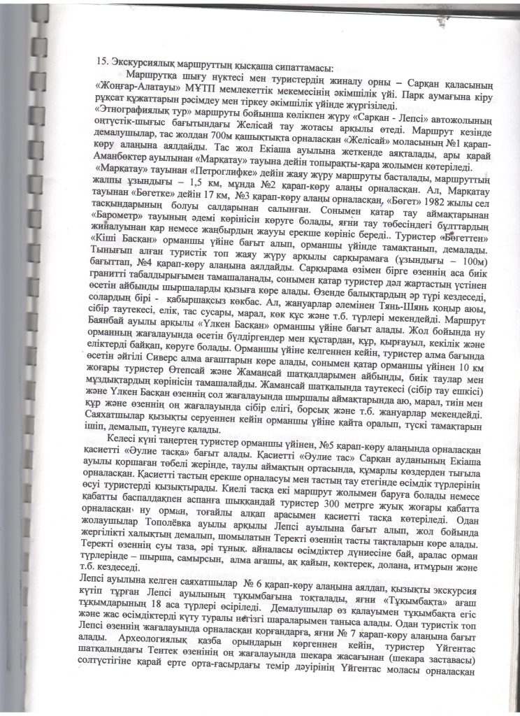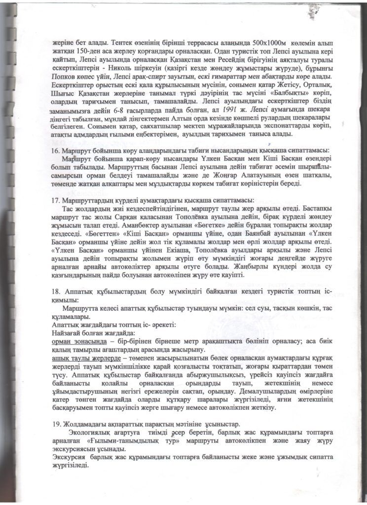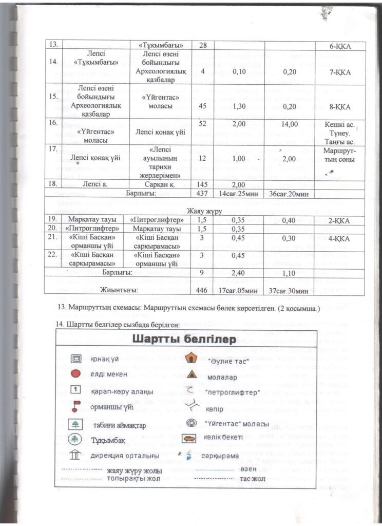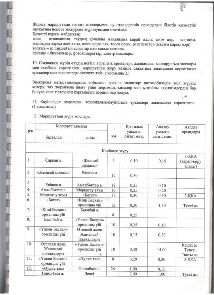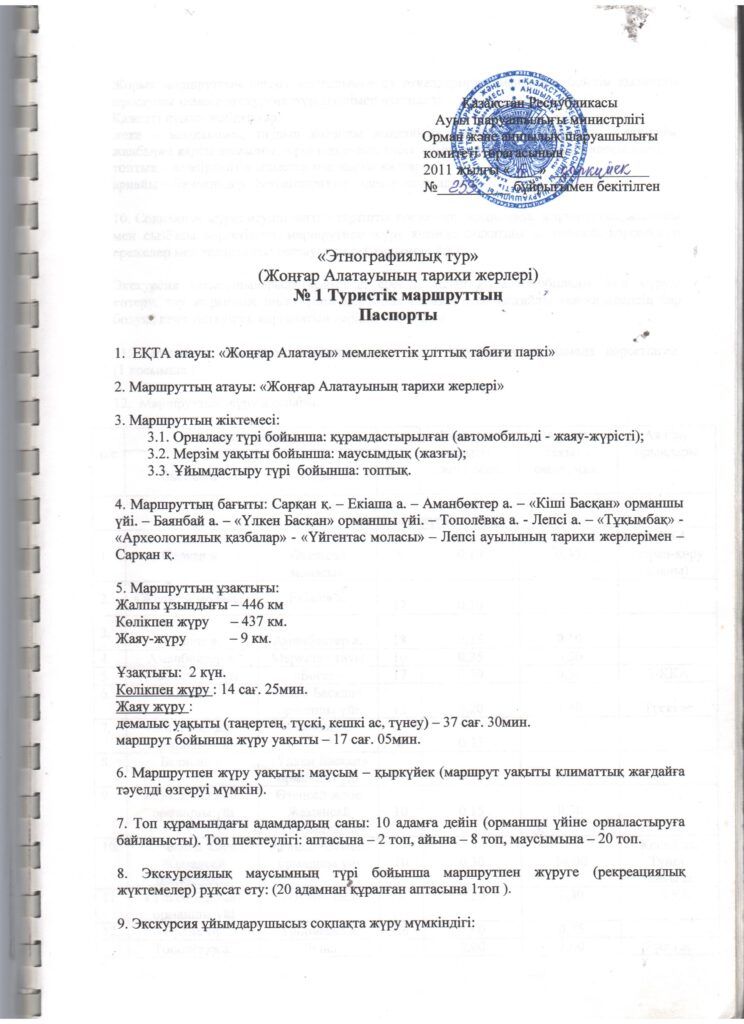 Туристік маршруттардың паспорттары