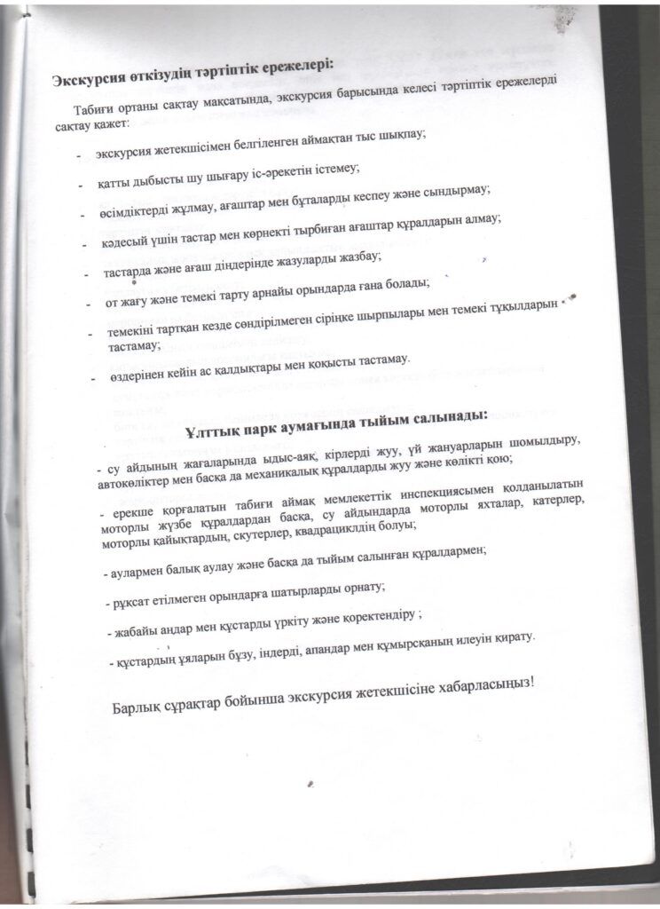 Ұлттық паркке бару бойынша ұсыныстар