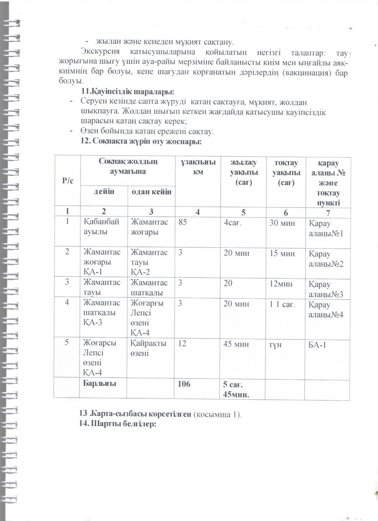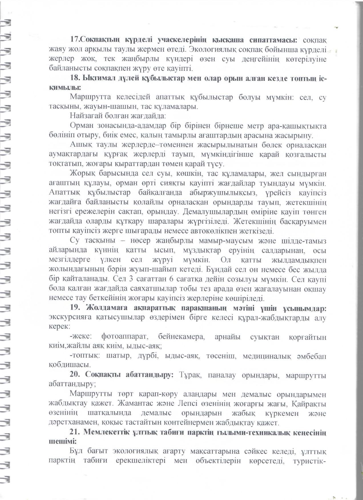 Туристік маршруттардың паспорттары
