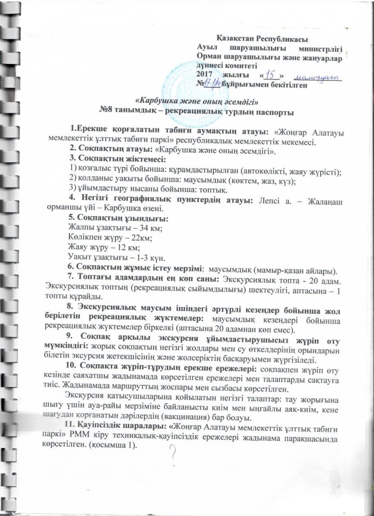 №8 Туристік маршрут «Карбушка және оның әсемдегі»